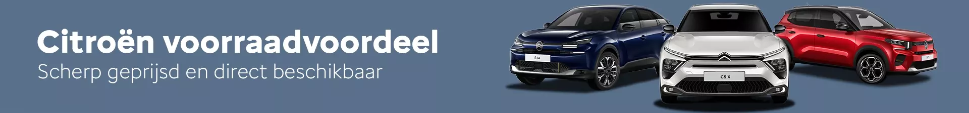Bij Broekhuis vind je scherpe prijzen op Citroën modellen. Onze voorraadmodellen zijn direct beschikbaar en scherp geprijsd, zodat je snel de weg op kunt in jouw nieuwe auto. Of je nu op zoek bent naar comfort, ruimte of sportiviteit: er is altijd een model dat bij jou past. Zo hoef je nooit lang te wachten op jouw nieuwe auto. Bij Broekhuis zorgen we dat er altijd een mogelijkheid is die bij jou situatie aansluit. Bekijk hier alle actuele Citroën aanbiedingen en profiteer direct.