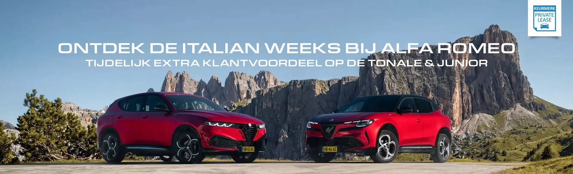 Stap tijdelijk extra voordelig in een nieuwe Alfa Romeo. Alleen tijdens de Italian Weeks profiteer je van exclusieve upgrades en klantvoordeel dat kan oplopen tot € 3.000**.
