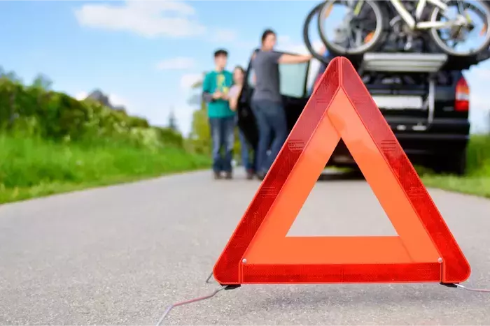 Wees voorbereid op ongevallen met een brandblusser, een EHBO-set, een gevarendriehoek, reflecterende vestjes, een noodhamer, sneeuwkettingen, een kruissleutel en een voetpomp aan boord.