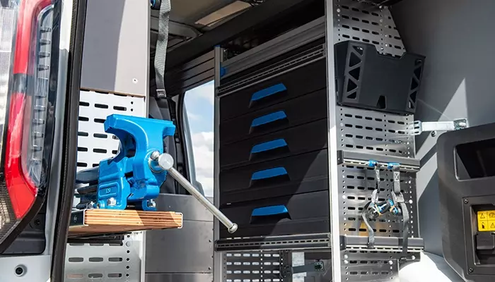 Functionaliteit, comfort en veiligheid gaan bij ons hand in hand. Of je nu timmerman, installateur, servicemonteur of koerier bent, wij richten je wagen zo in dat je altijd optimaal voorbereid bent. Met slimme opbergsystemen, stevige bevestigingen en duurzame materialen haal je alles uit je mobiele werkplek – en kun je zonder zorgen op pad, waar je werk je ook brengt.