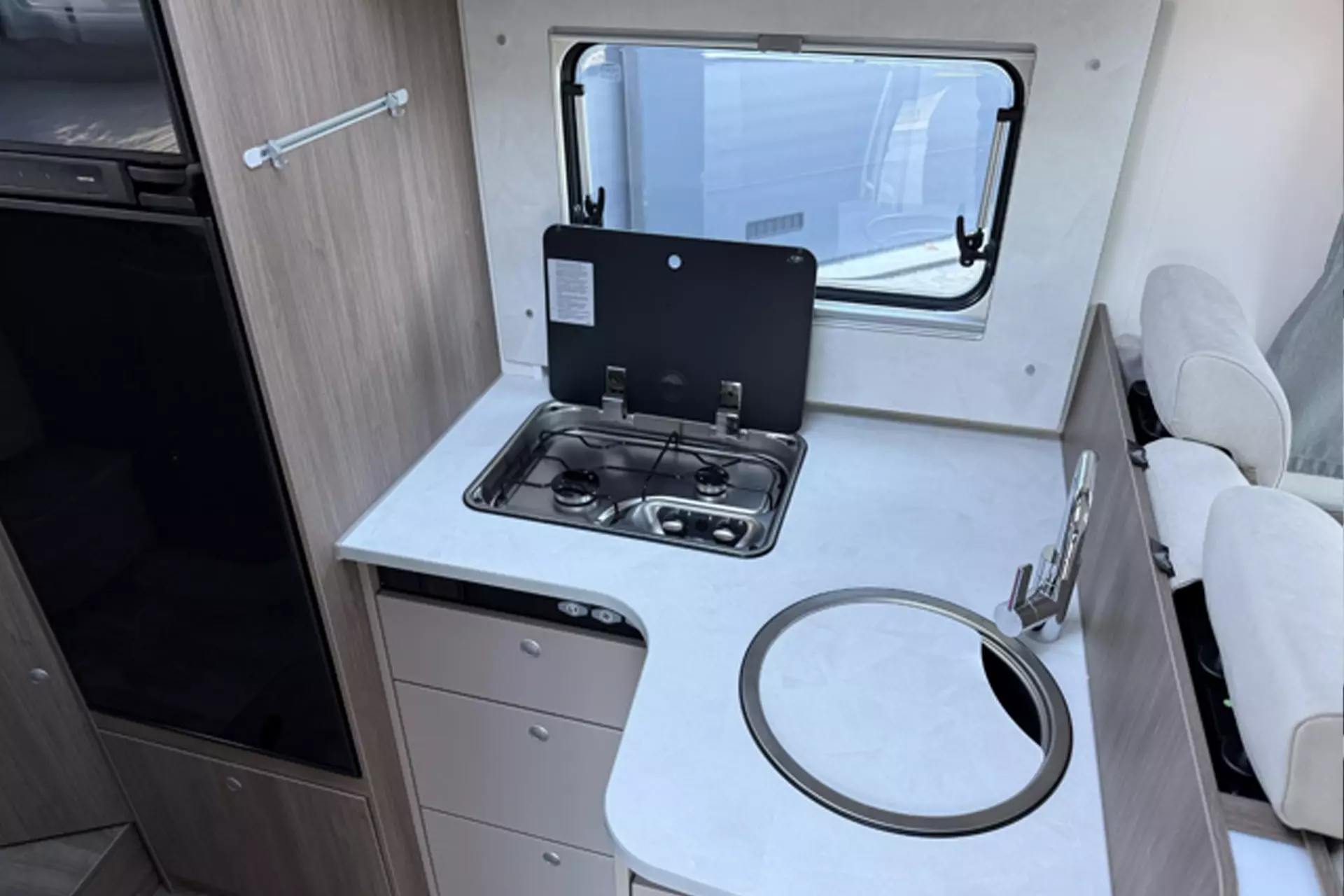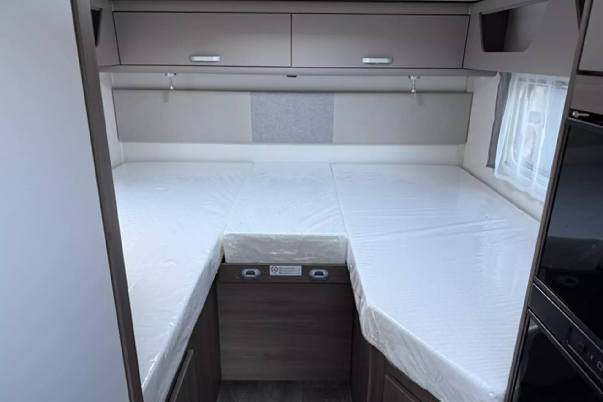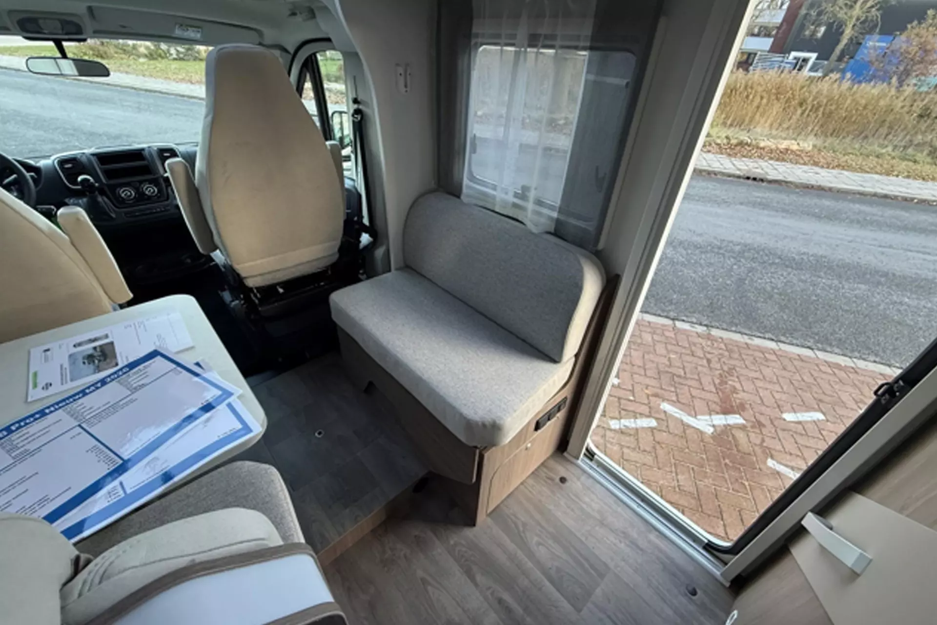 Ruim sanitair en een gezellige zithoek. U komt de camper niet meer uit. Netjes opgeborgen: Ruime garage achterin, grote schuifladen en praktische bovenkasten. U kunt er nagenoeg alles in kwijt. Een woon- en welzijnsruimte: Dankzij de draaibare bestuurders- en passagiersstoel kan zo een gezellige zithoek worden gecreëerd.
