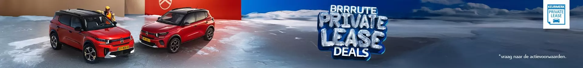 De BRRRUTE Private Lease Deals wachten op niemand. Wilt u zeker zijn van die extra korting tot € 50,- per maand en direct wegrijden in een nieuwe Citroën zonder onverwachte kosten? Vraag vandaag nog een offerte aan of bekijk de modellen voor meer informatie.