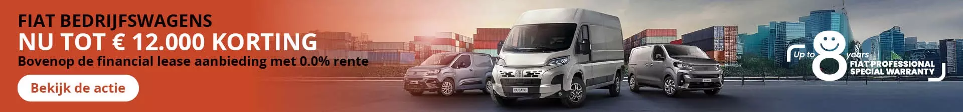 Bij FIAT Professional profiteer je nu van een verlengde garantie tot maar liefst 8 jaar op alle FIAT Professional modellen. Deze uitgebreide dekking omvat de standaard fabrieksgarantie van 2 jaar, aangevuld met een aanvullende dekking van maximaal 6 jaar.