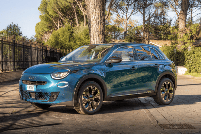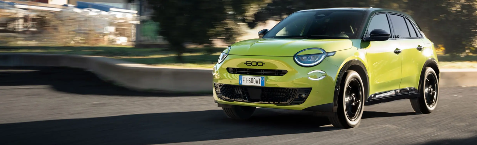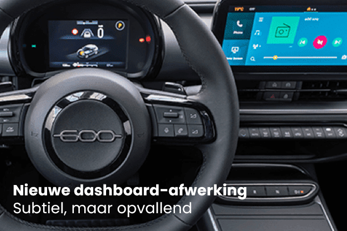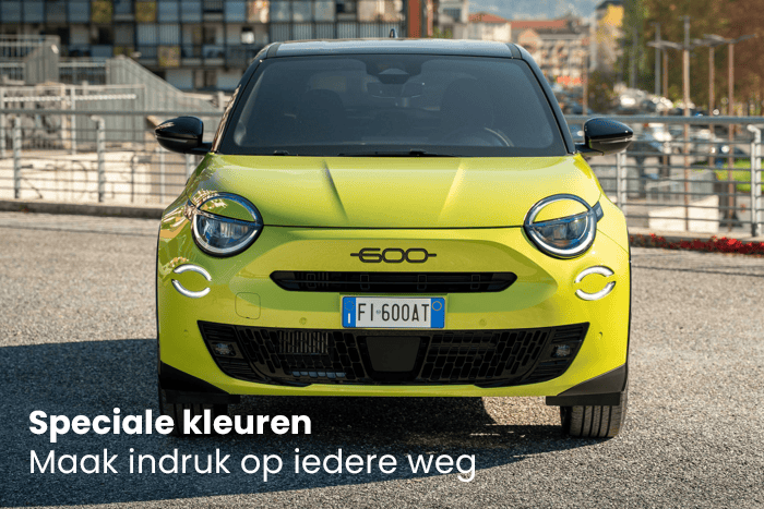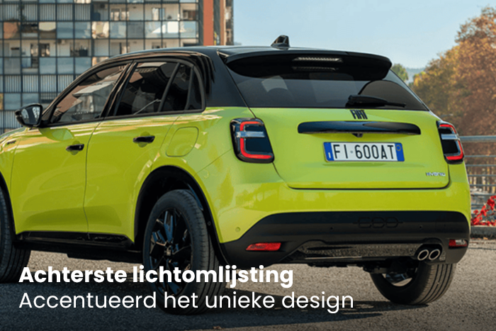 De nieuwe Fiat 600 Sport straalt zowel kracht als elegantie uit. Elk element is ontworpen om sportiviteit te combineren met exclusief design en verfijning — van de vormgeving tot de 18-inch lichtmetalen velgen.