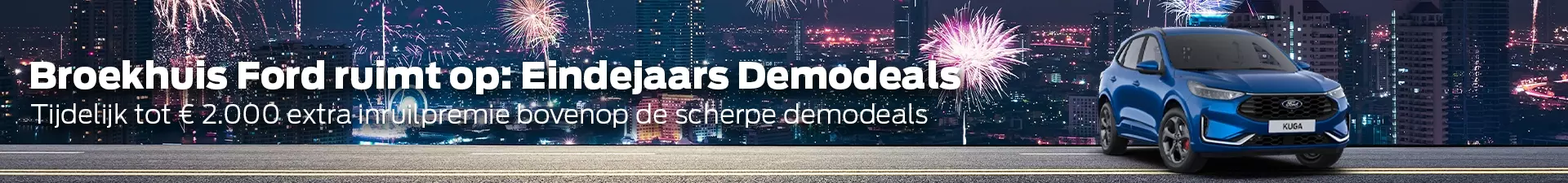 Onze Ford Kuga demomodellen zijn compleet uitgerust en direct leverbaar. Dit is hét moment om te profiteren van extra voordeel op onze scherpe prijzen. Je krijgt namelijk nu € 2.000 extra inruilpremie bovenop de scherpe Broekhuis Ford Eindejaars Demodeals!