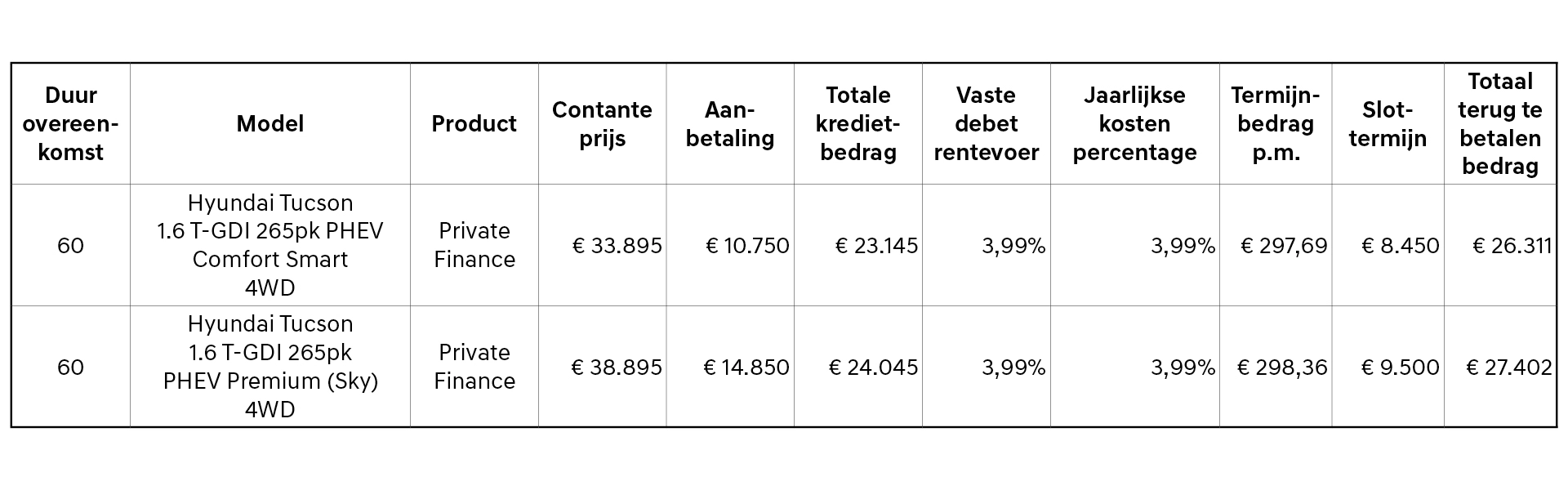 *Rekenvoorbeeld Hyundai Privé Plan - Hyundai Tucson