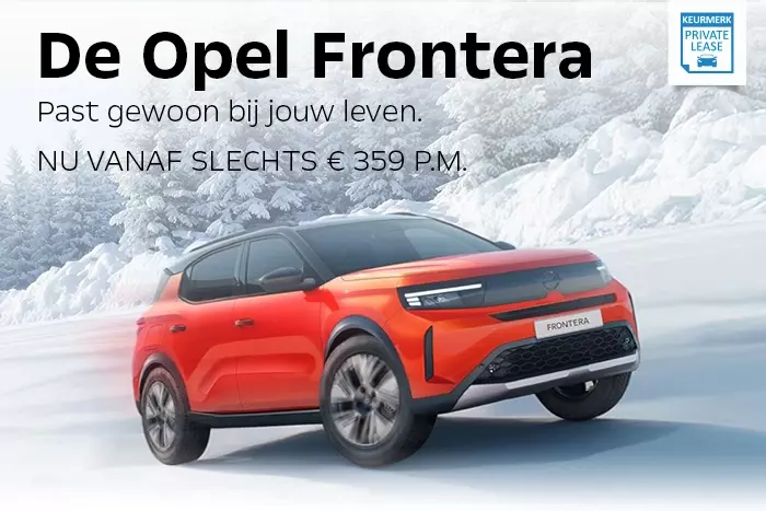 Je kent ’m misschien al: de Opel Frontera is inmiddels alweer zo’n jaar te zien in de showrooms. Maar nu wordt hij pas écht interessant. Tijdelijk profiteer je tot € 50 private lease korting per maand.
