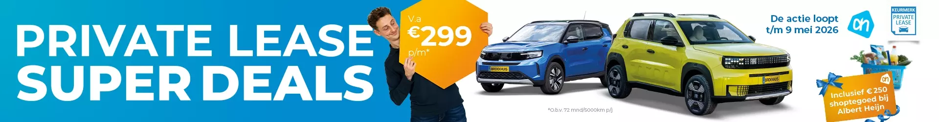 Bij het afsluiten van een leasecontract ontvang je tijdelijk € 250 boodschappentegoed bij Albert Heijn. Dat is nog eens voordelig de auto inladen!