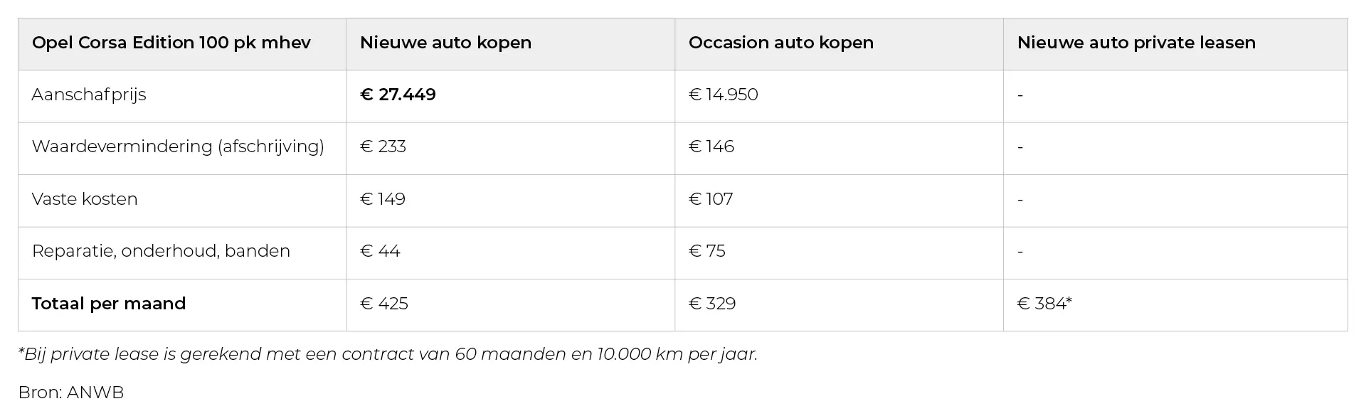 De ANWB rekende dit door voor een Opel Corsa Edition 100 pk mhev.